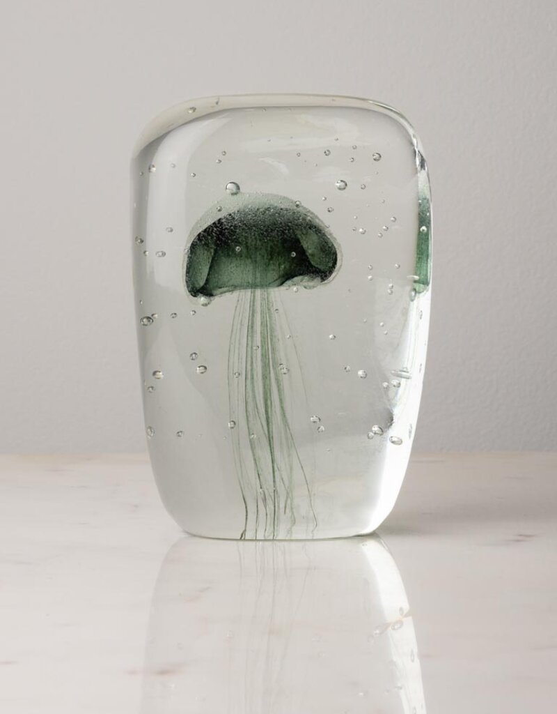 Set of 3 Paperweights - Blue, Green, and Orange Jellyfish in Glass
